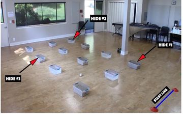This is a special video created for this trial that shows you where the hides were hidden for your search. It is a short 5-10 second clip that will be placed at the beginning of your ordered video. It's a great way to remind yourself of the placement of the hides before watching your dog run.